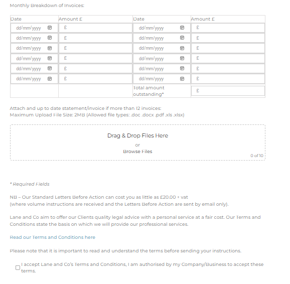 Our website has been developed to assist you (and us) to be able to process your instructions swiftly.  Solicitors Letter Before Action | Lane & Co Debt Recovery Solicitors
