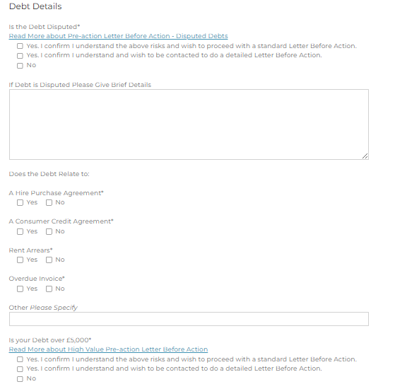 If your debt is Disputed or of a High Value we do recommend a Pre Action Protocol Letter Before Action. Pre-Action Protocols – Civil Procedure Rules – Justice UK