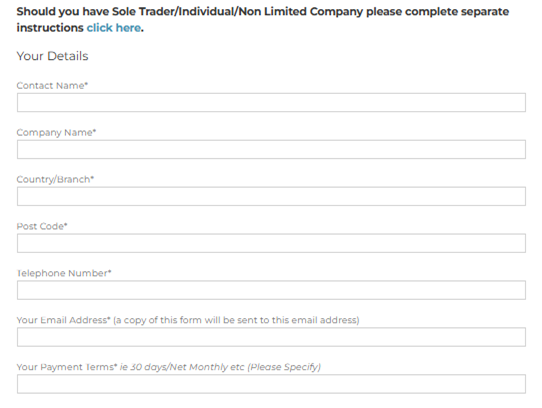 Your information must be completed and the payment terms of your invoices identified, this is usually found either on your invoice or in your Terms and Conditions of Business.